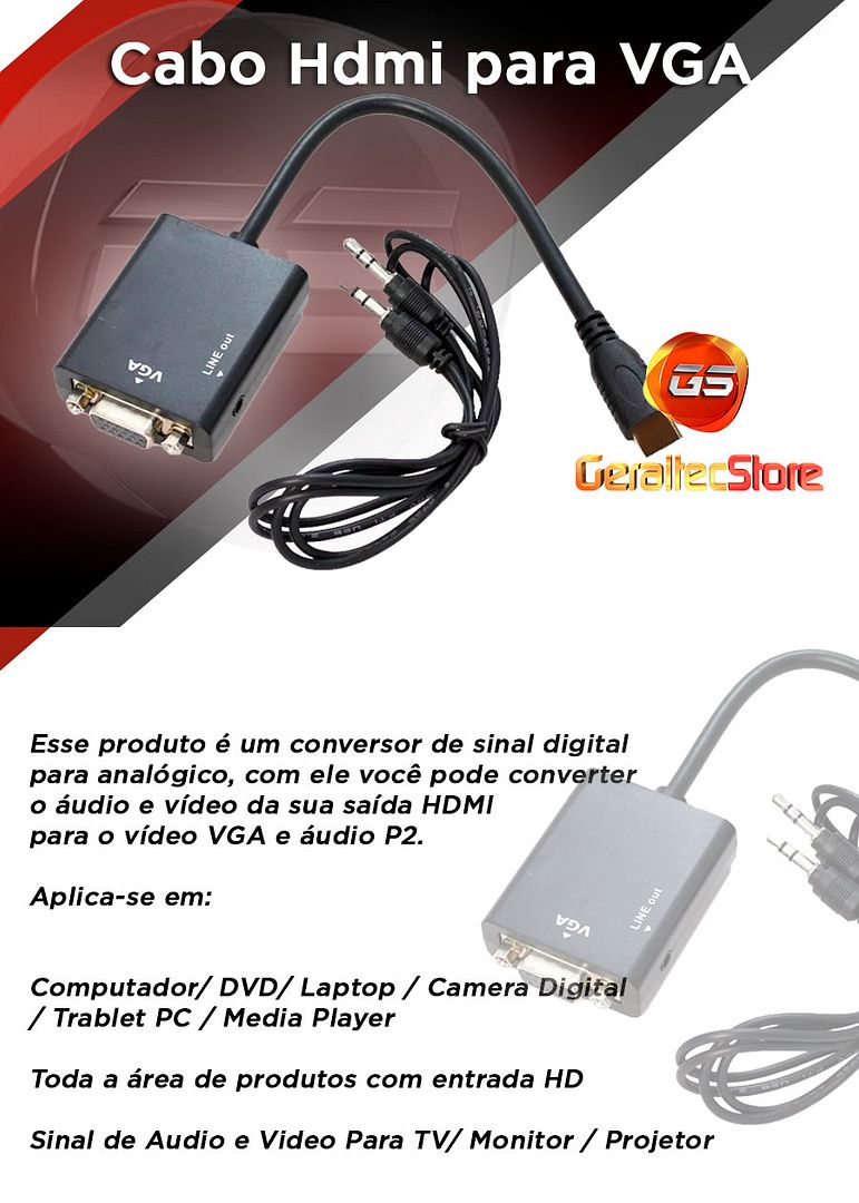 Mini conversor VGA p/ HDMI c/ entrada áudio P2 - MVH para ...