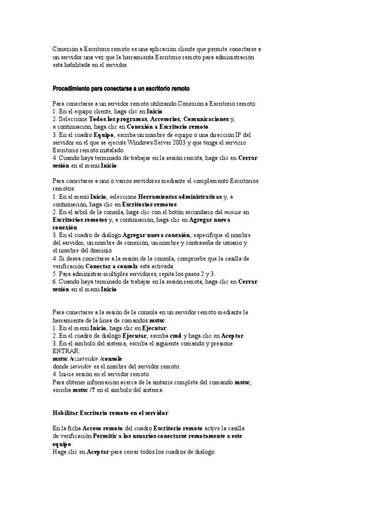 Como crear y utilizar una conexion a escritorio remoto en ...