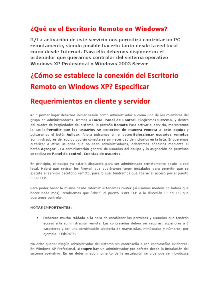 Qué es el Escritorio Remoto en Windows | Windows Xp ...