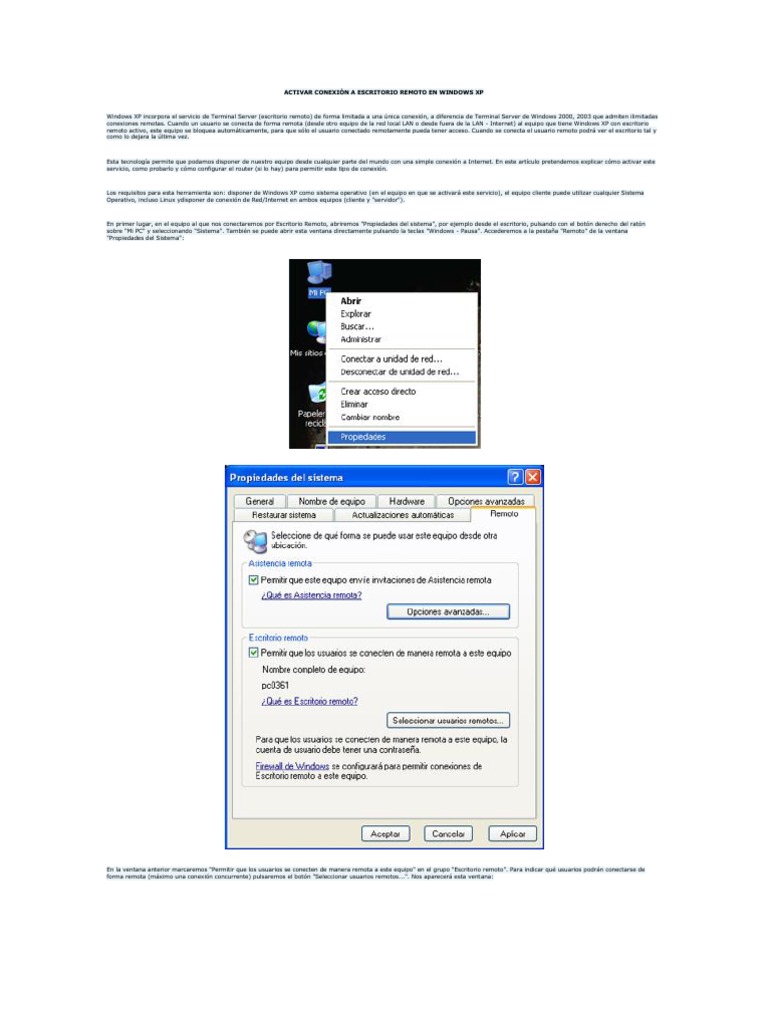 Activar conexión a Escritorio Remoto en Windows XP ...