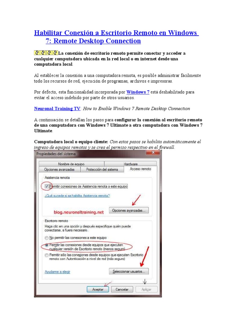 Habilitar Acceso Remoto Escritorio Remoto Windows 7 | Doovi