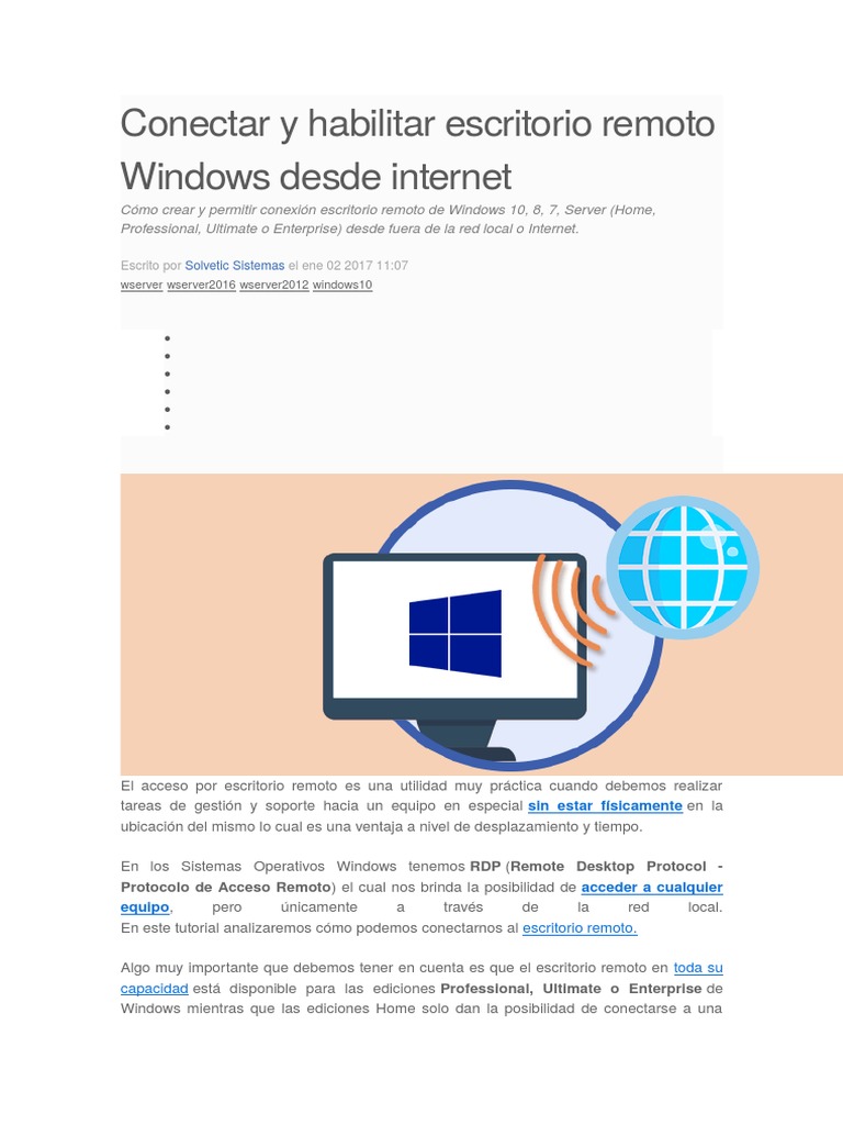 Conectar, habilitar escritorio remoto Windows desde int ...