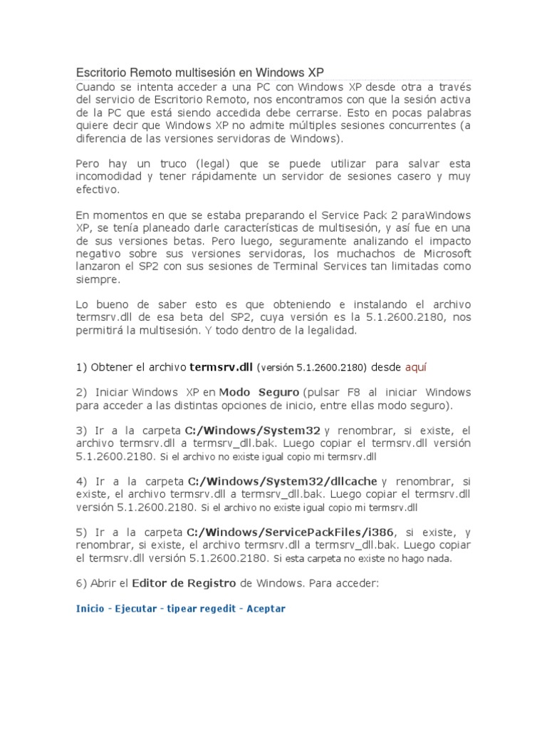 Escritorio Remoto multisesión en XP | Windows XP ...